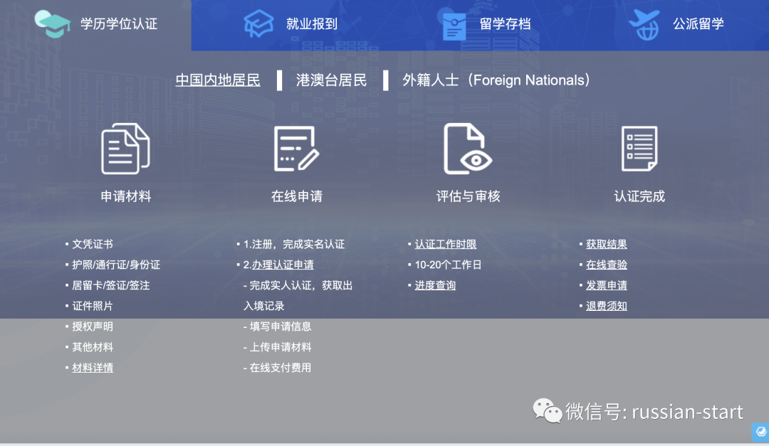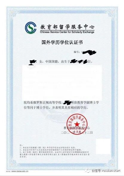 需要准确提供在国外大学获得的毕业证(俄罗斯是毕业证、学位证二合一,所颁发的是学位证),如需要认证的国外学历学位证书或高等教育文凭的正反面均有文字,应同时提供其正反面的扫描件。