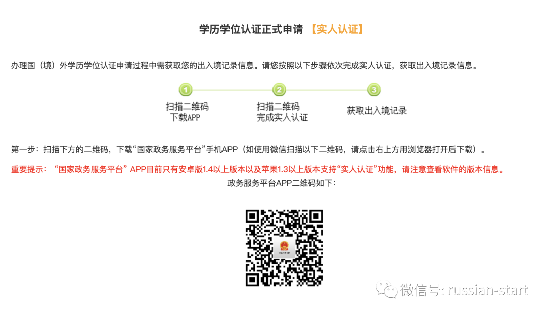 第四步:进行实名认证,认证需要下载“国家政务服务平台”手机APP来扫码进行认证。 认证完后系统会自动获取你的出入境记录。